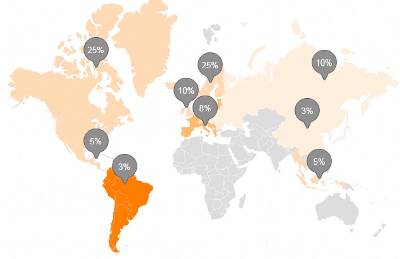 • Total annual Revenue:US$1 Million - US$5 Million Export Percentage:51% - 60% Northern Europe:25.00% North America:25.00% Western Europe:10.00% Eastern Europe:10.00% Southern Europe:8.00% Central America:5.00% Southeast Asia:5.00% Eastern Asia:3.00% South America:3.00%