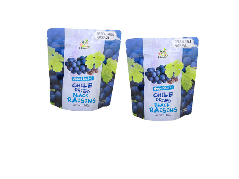 Plastic dried grapes stand up pouches with zipper |